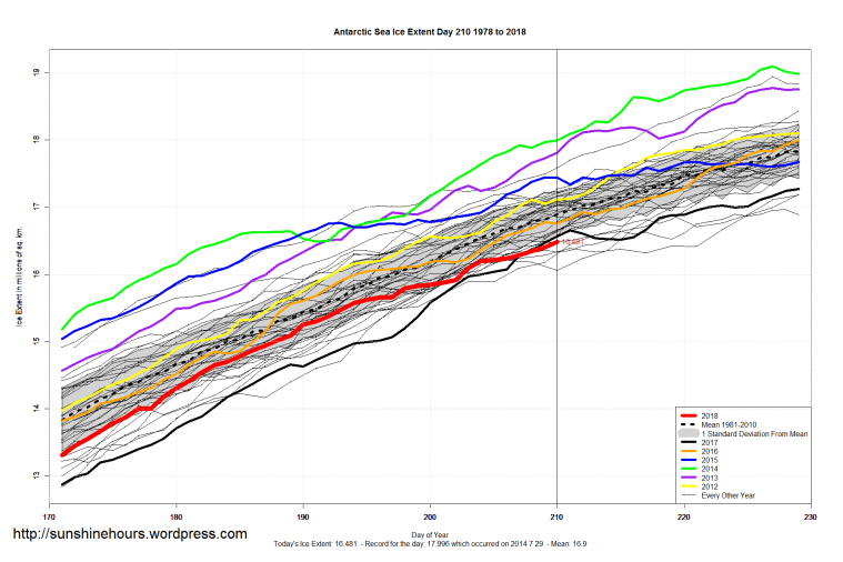 One thought on “Sea Ice Extent (Global Antarctic and Arctic) – Day 210 – 2018