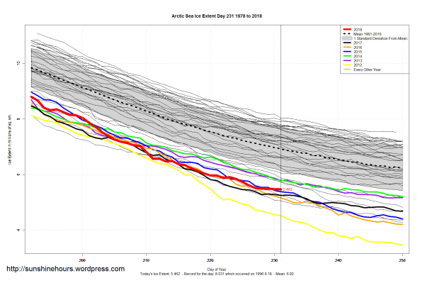 Sea Ice Extent (Global Antarctic and Arctic) – Day 231 – 2018