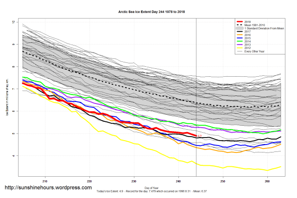Sea Ice Extent (Global Antarctic and Arctic) – Day 244 – 2018