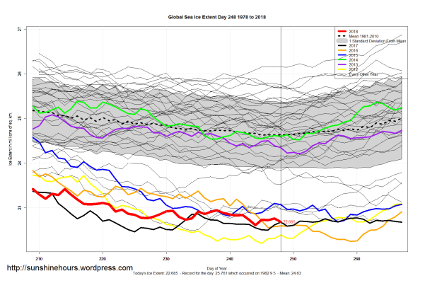 Sea Ice Extent (Global Antarctic and Arctic) – Day 248 – 2018