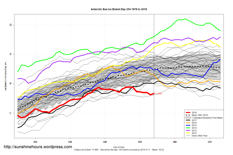 One thought on “Sea Ice Extent (Global Antarctic and Arctic) – Day 254 – 2018