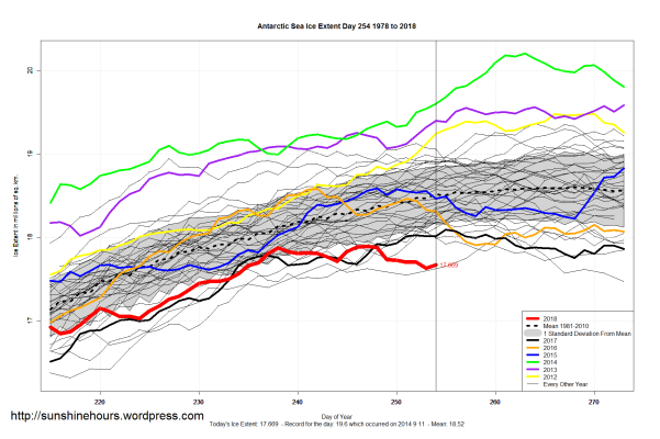 Sea Ice Extent (Global Antarctic and Arctic) – Day 254 – 2018