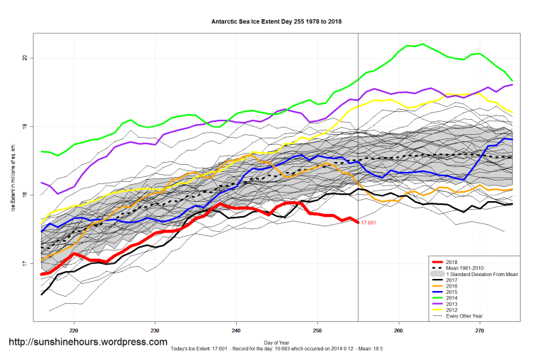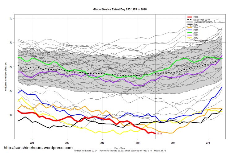 One thought on “Sea Ice Extent (Global Antarctic and Arctic) – Day 255 – 2018