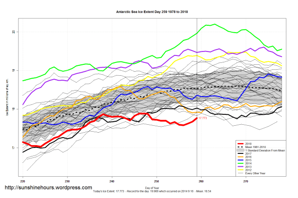 Sea Ice Extent (Global Antarctic and Arctic) – Day 259 – 2018