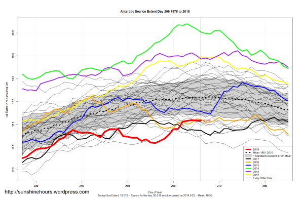Sea Ice Extent (Global Antarctic and Arctic) – Day 266 – 2018