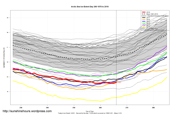 Sea Ice Extent (Global Antarctic and Arctic) – Day 266 – 2018