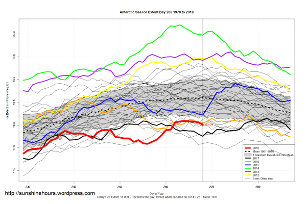 Sea Ice Extent (Global Antarctic and Arctic) – Day 268 – 2018