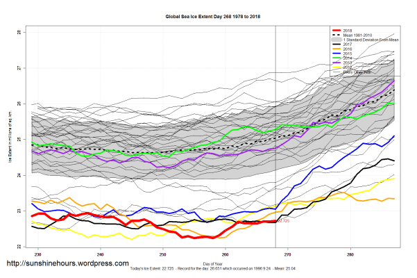 Sea Ice Extent (Global Antarctic and Arctic) – Day 268 – 2018