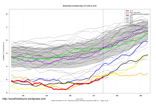 Sea Ice Extent (Global Antarctic and Arctic) – Day 274 – 2018