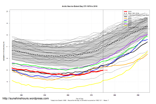 Sea Ice Extent (Global Antarctic and Arctic) – Day 275 – 2018