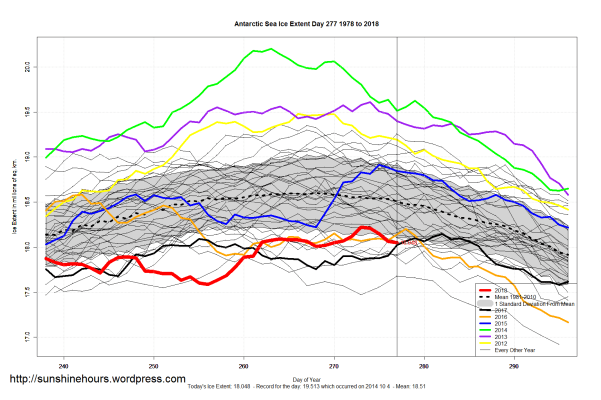 Sea Ice Extent (Global Antarctic and Arctic) – Day 277 – 2018