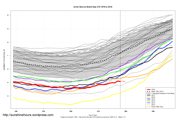 Sea Ice Extent (Global Antarctic and Arctic) – Day 278 – 2018