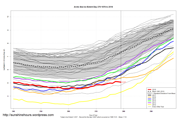 Sea Ice Extent (Global Antarctic and Arctic) – Day 279 – 2018