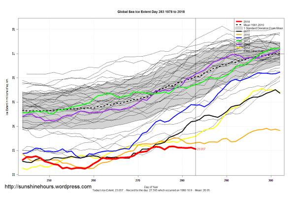 Sea Ice Extent (Global Antarctic and Arctic) – Day 283- 2018