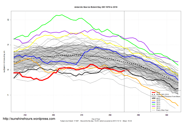 Sea Ice Extent (Global Antarctic and Arctic) – Day 285 – 2018