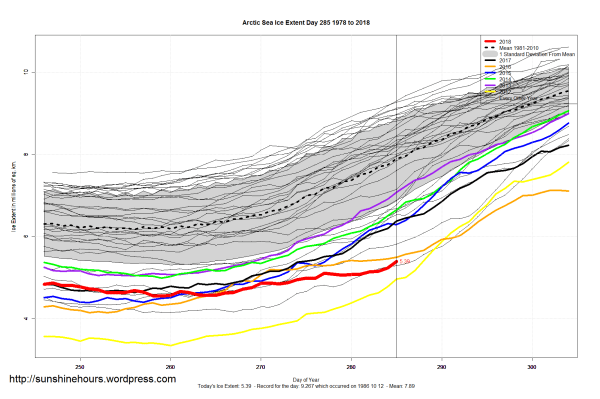 Sea Ice Extent (Global Antarctic and Arctic) – Day 285 – 2018