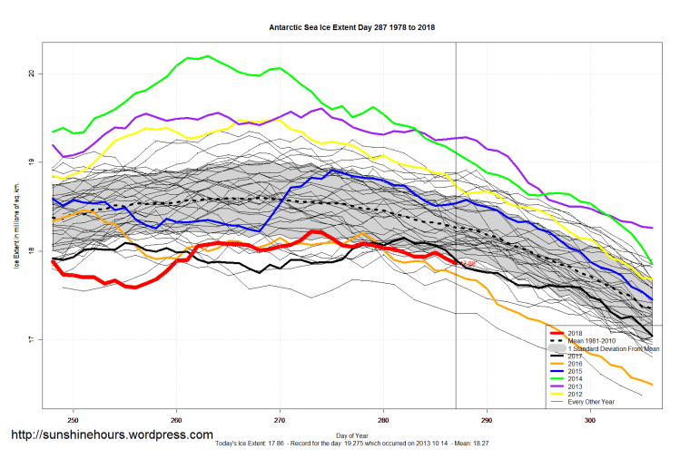 One thought on “Sea Ice Extent (Global Antarctic and Arctic) – Day 287 – 2018