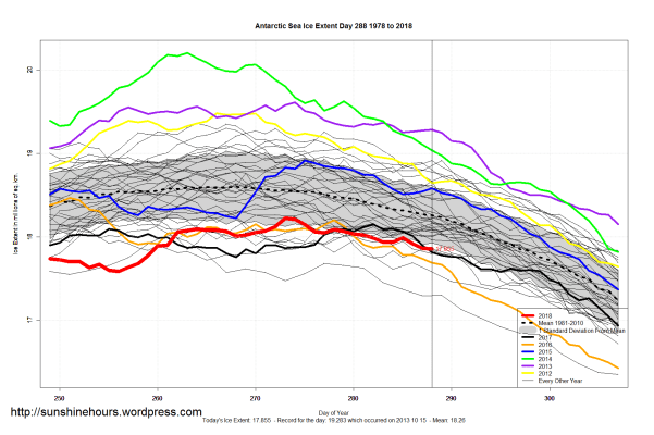 Sea Ice Extent (Global Antarctic and Arctic) – Day 288 – 2018