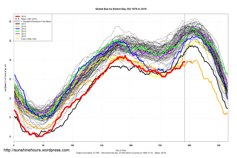 One thought on “Sea Ice Extent (Global Antarctic and Arctic) – Day 292 – 2018