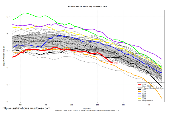 Sea Ice Extent (Global Antarctic and Arctic) – Day 296 – 2018