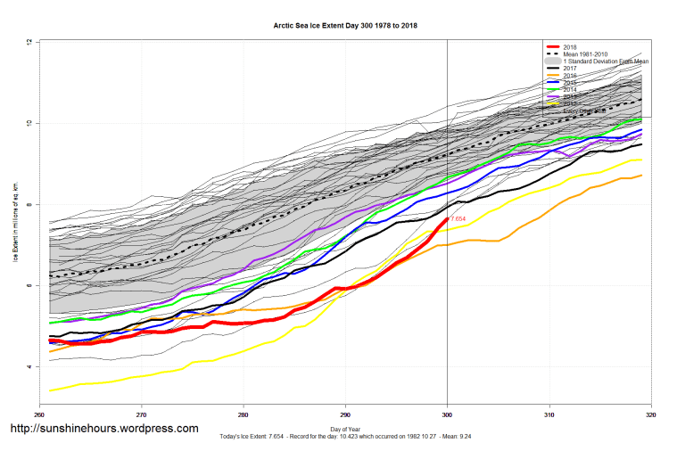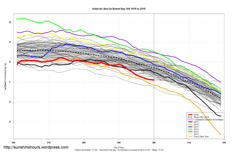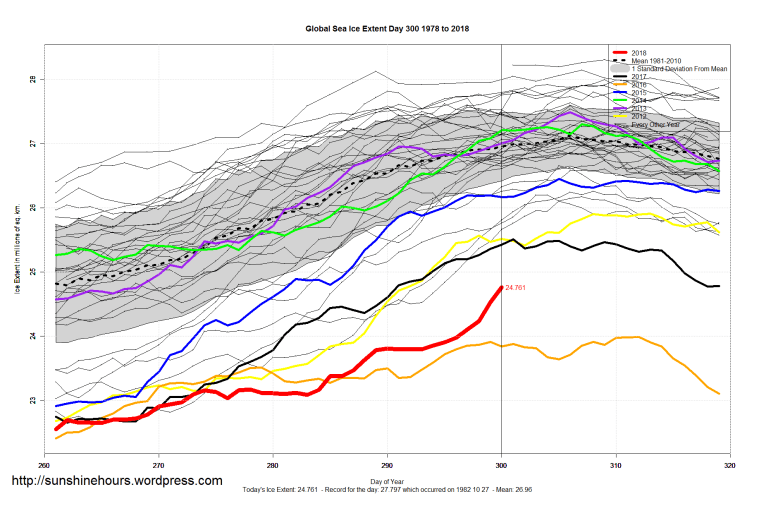 One thought on “Sea Ice Extent (Global Antarctic and Arctic) – Day 300 – 2018