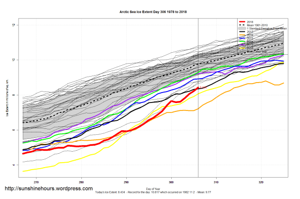 Sea Ice Extent (Global Antarctic and Arctic) – Day 306 – 2018