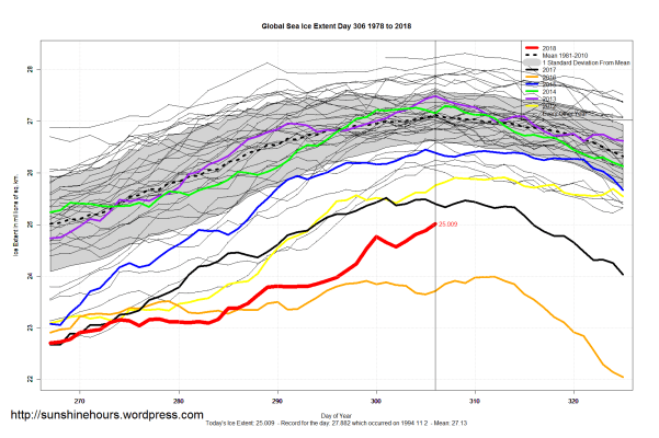 Sea Ice Extent (Global Antarctic and Arctic) – Day 306 – 2018