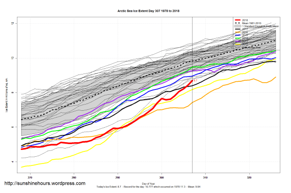 Sea Ice Extent (Global Antarctic and Arctic) – Day 307 – 2018