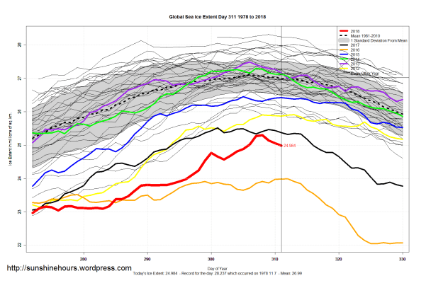 Sea Ice Extent (Global Antarctic and Arctic) – Day 311 – 2018