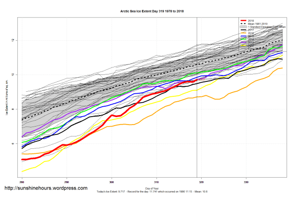 Sea Ice Extent (Global Antarctic and Arctic) – Day 319 – 2018