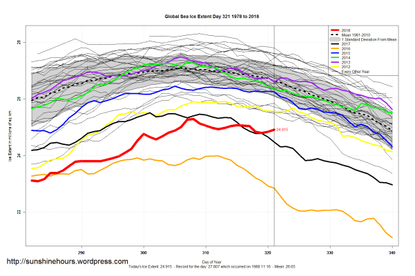 Sea Ice Extent (Global Antarctic and Arctic) – Day 321 – 2018