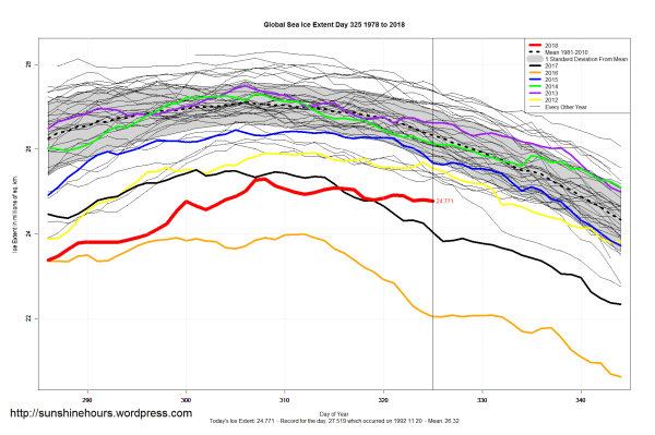 Sea Ice Extent (Global Antarctic and Arctic) – Day 325 – 2018