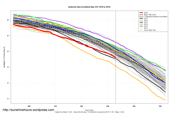 Sea Ice Extent (Global Antarctic and Arctic) – Day 333 – 2018