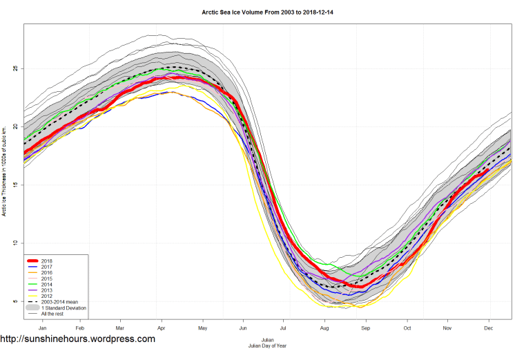 Arctic Sea Ice Volume 14-Dec-2018 Published on December 15, 2018December 15, 2018 by sunshinehours1 From DMI Share this: Click to share on X (Opens in new window) X Click to share on Facebook (Opens in new window) Facebook Like Loading... Related