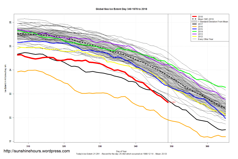 Sea Ice Extent (Global Antarctic and Arctic) – Day 349 – 2018 Published on December 16, 2018December 16, 2018 by sunshinehours1 South / North Share this: Click to share on X (Opens in new window) X Click to share on Facebook (Opens in new window) Facebook Like Loading... Related