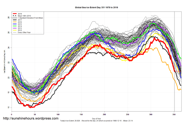 Sea Ice Extent (Global Antarctic and Arctic) – Day 351 – 2018