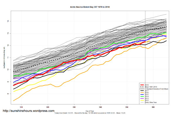 Sea Ice Extent (Global Antarctic and Arctic) – Day 357 – 2018