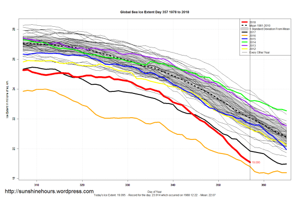 Sea Ice Extent (Global Antarctic and Arctic) – Day 357 – 2018