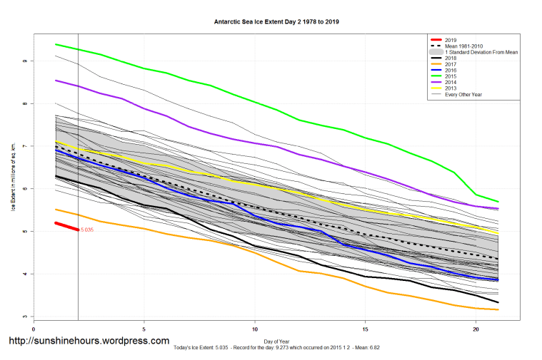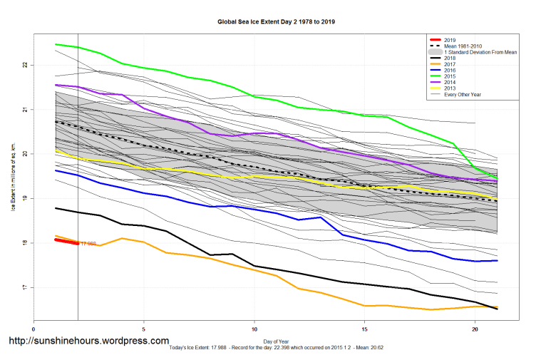 Sea Ice Extent (Global Antarctic and Arctic) – Day 2 – 2019