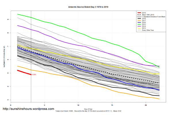 Sea Ice Extent (Global Antarctic and Arctic) – Day 3 – 2019