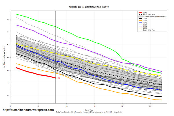 Sea Ice Extent (Global Antarctic and Arctic) – Day 8 – 2019