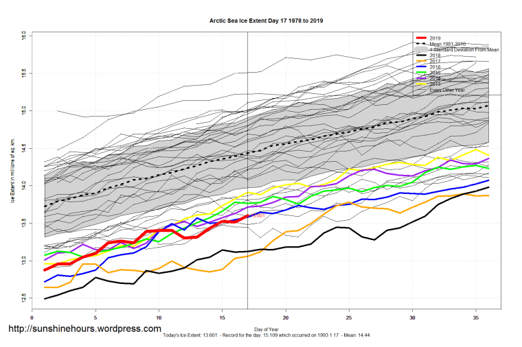 One thought on “Sea Ice Extent (Global Antarctic and Arctic) – Day 17 – 2019