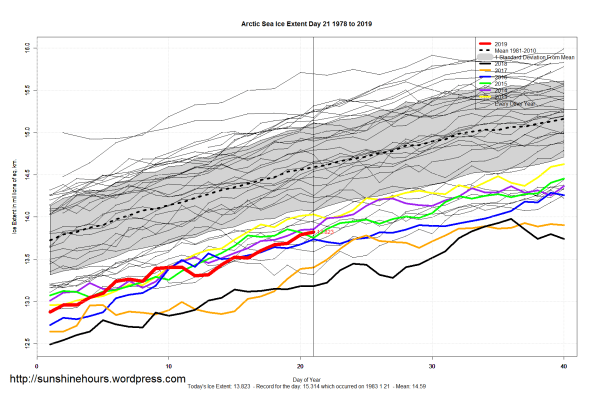 Sea Ice Extent (Global Antarctic and Arctic) – Day 21 – 2019