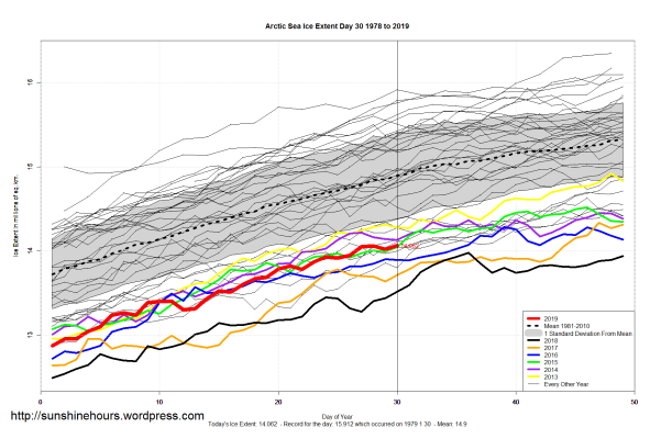 Sea Ice Extent (Global Antarctic and Arctic) – Day 30 – 2019