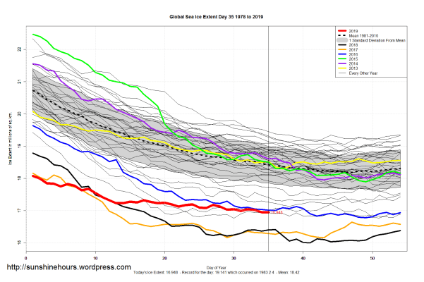 Sea Ice Extent (Global Antarctic and Arctic) – Day 35 – 2019