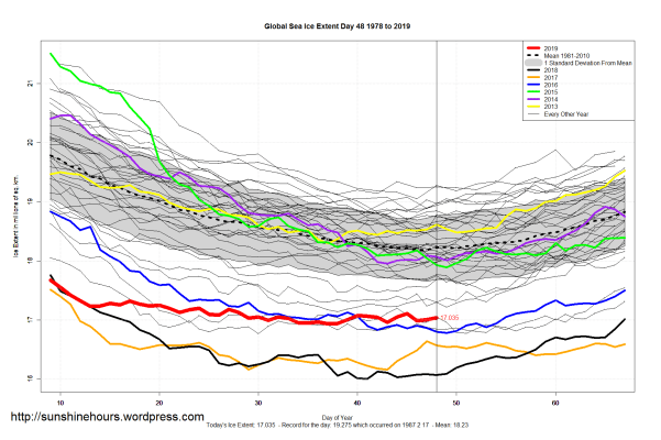 Sea Ice Extent (Global Antarctic and Arctic) – Day 48 – 2019