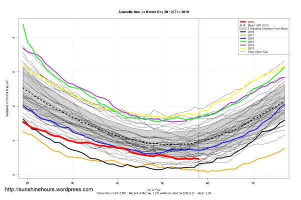 Sea Ice Extent (Global Antarctic and Arctic) – Day 58 – 2019