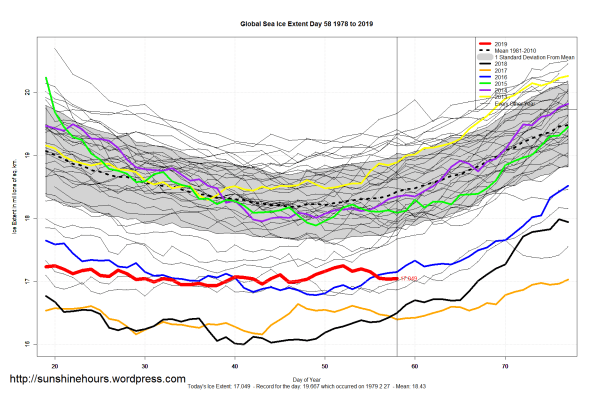 Sea Ice Extent (Global Antarctic and Arctic) – Day 58 – 2019