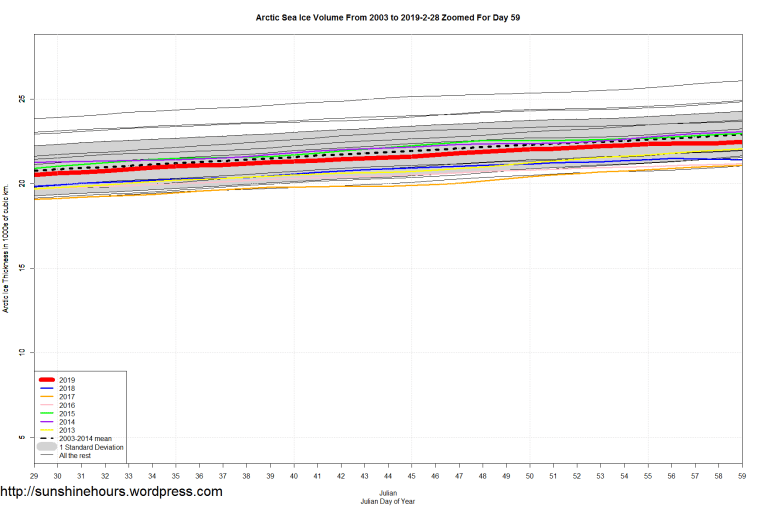 Arctic Sea Ice Volume 28-Feb-2019 Published on March 1, 2019March 1, 2019 by sunshinehours1 From DMI Share this: Click to share on X (Opens in new window) X Click to share on Facebook (Opens in new window) Facebook Like Loading... Related