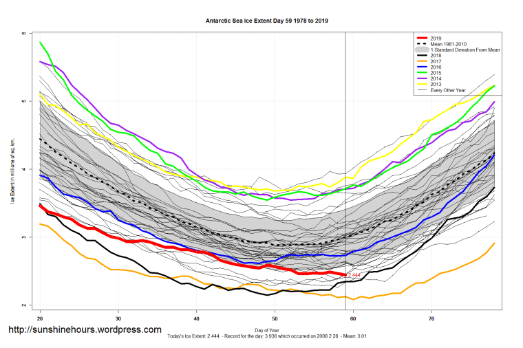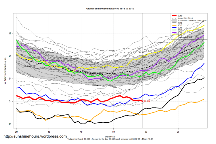 Sea Ice Extent (Global Antarctic and Arctic) – Day 59 – 2019